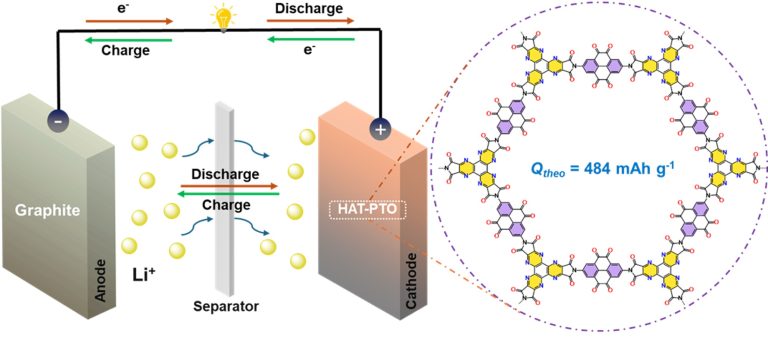 Our latest study on a polyimide-linked porous organic polymer (HAT-PTO) as a high-capacity organic cathode for Li batteries has just been published